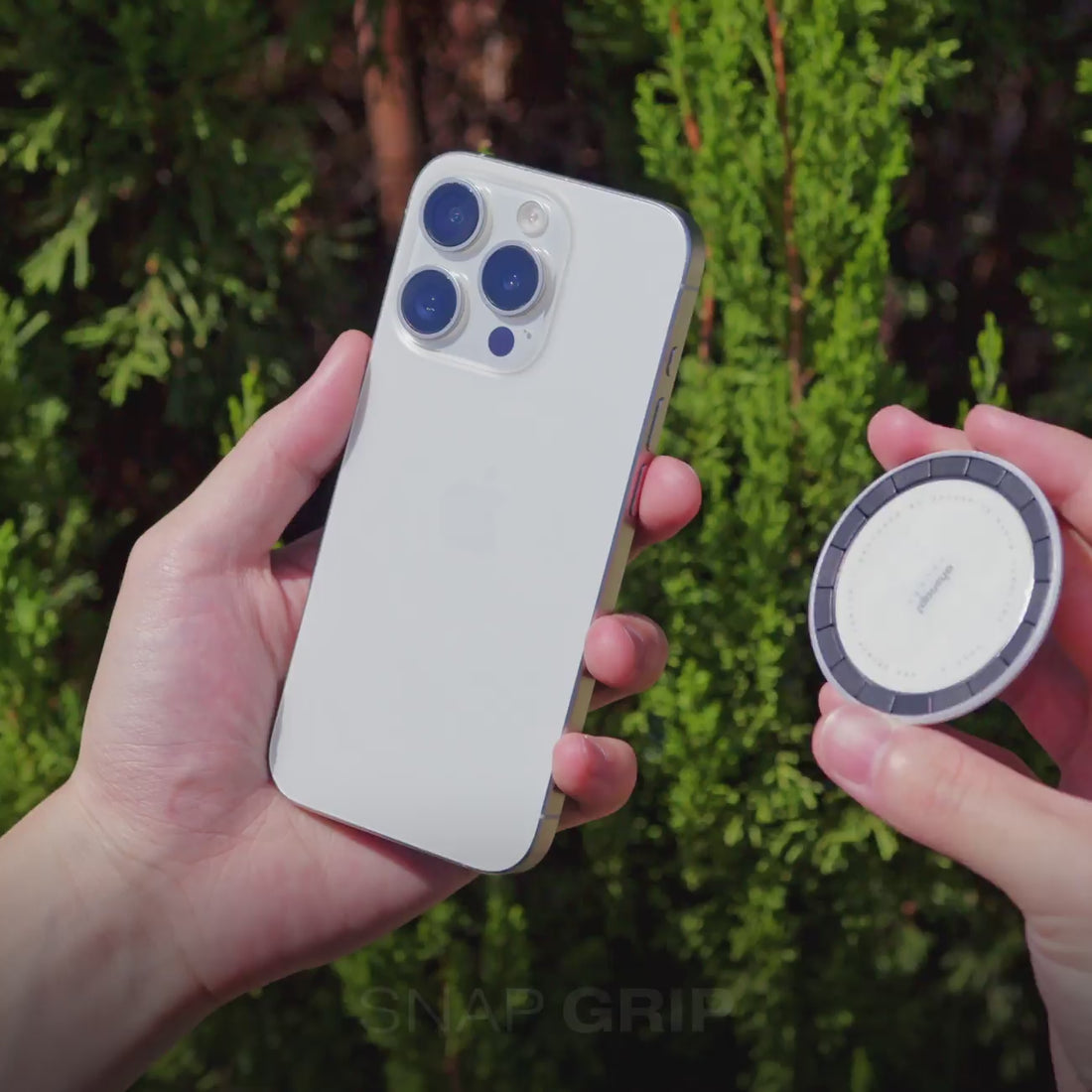 Snap Grip doesn't require adhesive, stays securely on your phone, and still strongly attaches to other accessories, stands, mounts, and steel surfaces. This was practically impossible. How do we know?'Cause this is the only grip that can do it. Magnet strength, polarity, grade, thickness, and more were all tuned to perfection to ensure Snap Grip 5 performs in all scenarios.